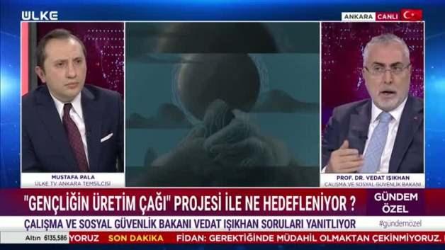ÜLKE TV’de Mustafa Pala’nın sunduğu “Gündem Özel” programına konuk olan Çalışma ve Sosyal Güvenlik Bakanı Prof. Dr. Vedat Işıkhan oldu.