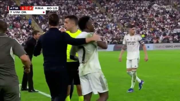 Arda Güler'in oyuna girdiği anlarda ise kenara gelen Vinicius Atletico'nun hocası Simeone, Vinicius'a öyle bir laf etti ki saha kenarı bir anda karıştı.