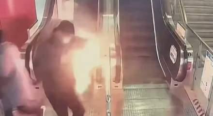 Çin'de bir metro istasyonunda yürüyen yolcunun cebindeki taşınabilir şarj cihazı powerbank aniden alev aldı. Güvenlik kameralarına saniye saniye yansıyan olayda, istasyonda büyük panik yaşanırken görevliler yangına anında müdahale etti.