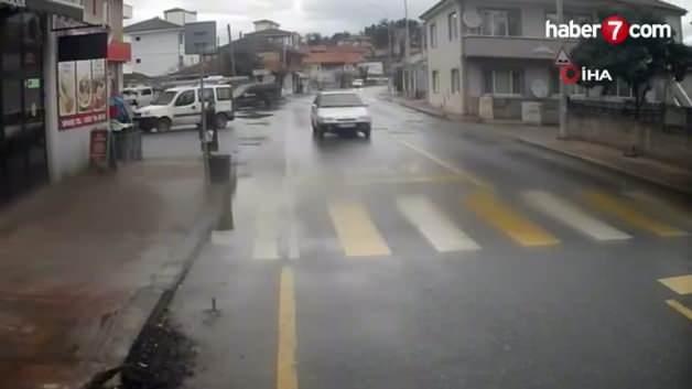 Hususa ilişkin inceleme başlatılırken kaza anı güvenlik kamerasına yansıdı.