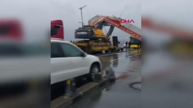 Üsküdar Sahil Yolu'nda seyir halindeki bir tırın üzerindeki iş makinesi yol tabelasına takıldı. Devrilen tabela park halindeki 7 araca hasar verirken, olayda yaralanan olmadı.