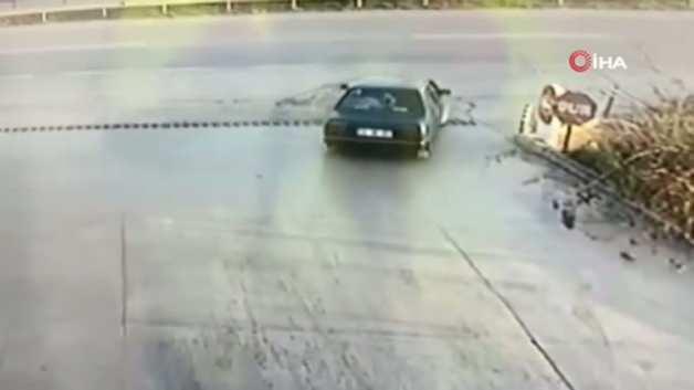 Antalya'nın Serik ilçesinde iki otomobilin karıştığı kazada, araç demir bariyerin üzerinde kaldı. Şans eseri kimsenin yaralanmadığı kaza anı güvenlik kamerası tarafından anbean kaydedildi.