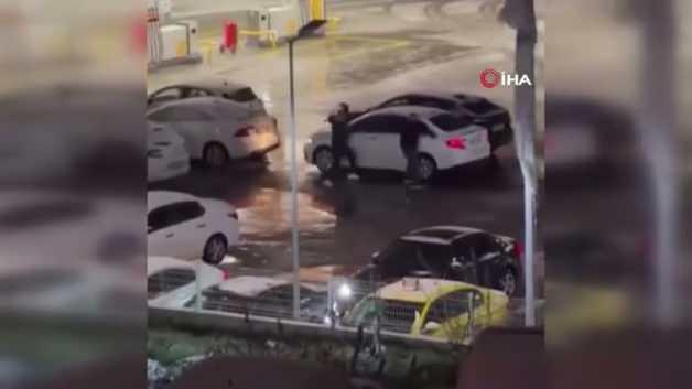 İstanbul Esenyurt'ta bulunan bir benzinlikte şehir eşkiyaları ortalığı birbirine kattı. Eli sopalı 4 şahıs, tartışma yaşadıkları adamı bulamayınca aracına saldırdı. Darbelerin ardından araçta zarar yaşanırken, saldırı sırasında bir kadın ise koşarak kaçtı. Yaşanan o anlar ise çevredeki bir vatandaşın cep telefonu kamerasına yansıdı.
