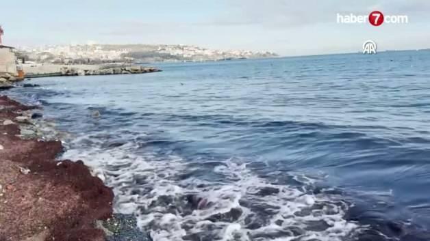 Sahildeki bazı alanlarda kırmızı yosun birikti.