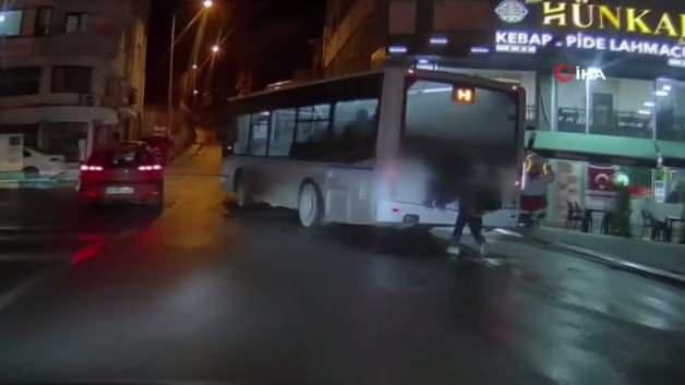 Çevredeki vatandaşların uyarılarına aldırış etmeyen çocuklar, korku dolu anların yaşanmasına neden oldu. Otobüs seyir halindeyken yaşanan tehlikeli yolculuk, olası bir kazaya adeta davetiye çıkardı. O anlar cep telefonu kamerasıyla saniye saniye kaydedildi.
