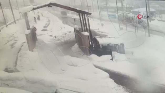 Bitlis'te kar yağışı nedeniyle kontrolden çıkan yolcu otobüsü, polis uygulama noktasına çarptı. Kazada 4 polis memuru yaralanırken, o anlar güvenlik kamerasına yansıdı.