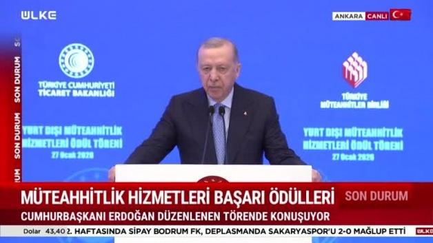 Başkan Recep Tayyip Erdoğan Yurt Dışı Müteahhitlik Hizmetleri Başarı Ödülleri Töreni'nde önemli açıklamalarda bulunuyor.