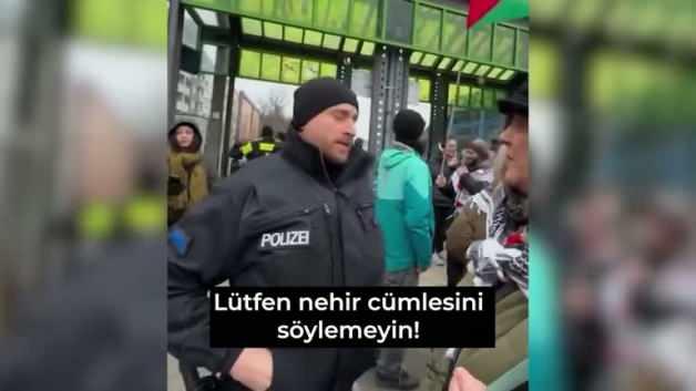 Berlin'de düzenlenen bir protestoda Alman polisin vatandaşa uyarısı sosyal medyada gündem oldu. Polis memuru, Filistin destekçisi bir göstericiye "Nehirden denize özgür Filistin" sloganı attığı için tutuklanabileceğini söyledi.