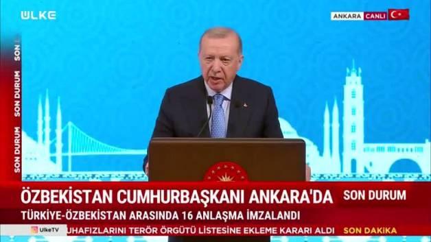 Cumhurbaşkanı Recep Tayyip Erdoğan, Özbekistan Cumhurbaşkanı Şevket Mirziyoyev ile gerçekleştirdiği Yüksek Düzeyli Stratejik İşbirliği Konseyi'nin 4. Toplantısı'nın ardından düzenlenen ortak basın toplantısında önemli açıklamalarda bulundu. Konuşmasına, konuk Cumhurbaşkanı ve heyetini "ikinci vatanlarında" ağırlamaktan duyduğu memnuniyeti dile getirerek başlayan Erdoğan, "Aziz kardeşim Mirziyoyev'e, muhterem refikalarına ve kıymetli heyet üyelerine Türkiye'ye 'hoş geldiniz, sefalar getirdiniz' diyorum." ifadesini kullandı.
