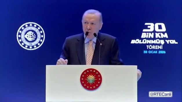 Cumhurbaşkanı Recep Tayyip Erdoğan, Haliç Kongre Merkezi'nde düzenlenen "Karayolları Genel Müdürlüğü 30 Bininci Kilometre Bölünmüş Yol Hizmete Alma Töreni"nde konuştu
