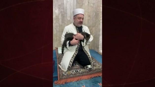 Yürekleirn ısındığı anlarda Kur'an-ı Kerim tilaveti gerçekleştirildiği sırada camiye giren bir kedi, imamın yanına yaklaştı ve imamın kucağına çıkarak usulca uzandı.