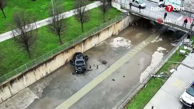 Edinilen bilgilere göre olay Halkalı Turgut Özal Bulvarı'nda yaşandı. 34 KU 9804 plakalı otomobil, iddiaya göre ters yönden dönüş yapmaya çalışırken kadın sürücünün kullandığı 34 EMB 343 plakalı araca çarptı. Çarpmanın etkisiyle takla atan 34 EMB 343 plakalı araç, dereye uçtu. Kazayı hafif sıyrıklarla atlatan kadın sürücü, sunrooftan dışarı çıktı. Sürücü, olay yerine gelen ambulans tarafından tedbir amaçlı hastaneye kaldırıldı.