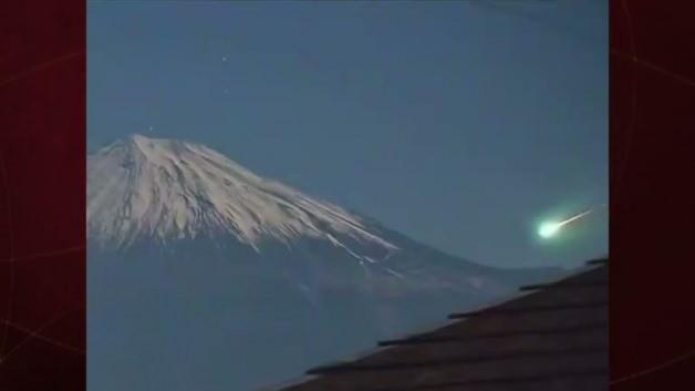 Japonya'nın en yüksek zirvesi ve ulusal simgesi olan Fuji Dağı yakınlarında gece saatlerinde ortaya çıkan parlak bir meteor, gökyüzünde süzülerek izleyenleri büyüledi.