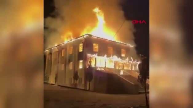 Camideki alevler, adeta geceyi aydınlattı.