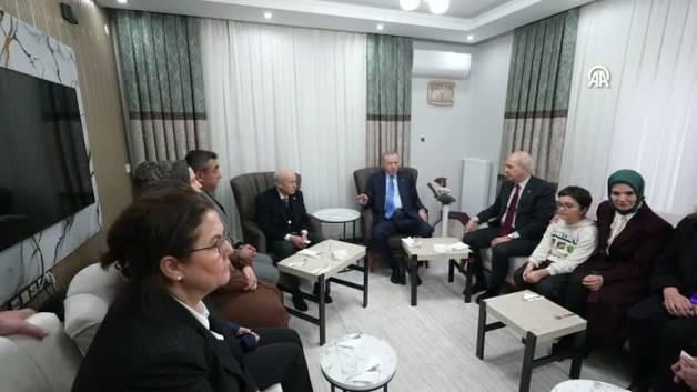 Cumhurbaşkanı Erdoğan, Osmaniye'de depremzede Hidayet Solak ve ailesini yeni evlerinde ziyaret etti. Erdoğan'a MHP lideri Bahçeli ve bakanlar da eşlik etti.