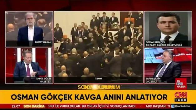 Osman Gökçek katıldığı televizyon programında ise yaşananlarını anlatarak CHP’li Mahmut Tanal’ın Akın Gürlek’e saldırmaya kalktığını söyledi.