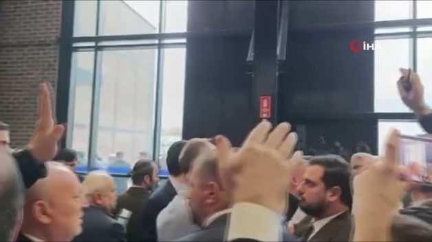 Salonda kalabalıkların birbirine yürümesi üzerine Büyükgöz, "Arkadaşlar lütfen geri çekilin" diyerek tarafları sakinleştirmeye çalıştı.
