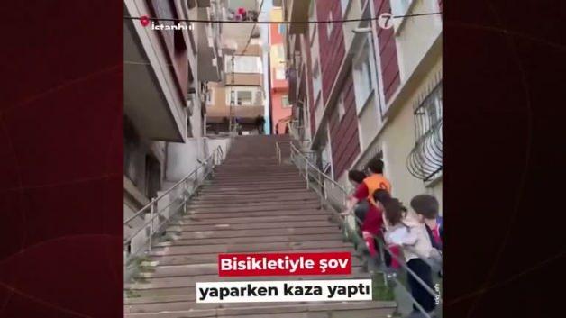 Dik merdivenleriyle bisiklet şovu yapmak isteyenlerin gözdesi İstanbul Kağıthane'de, bisikletiyle merdivenlerden süratle inmeye çalışan bir kişi, feci şekilde kaza yaptı.