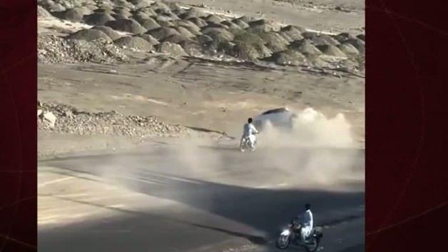 Sosyal medyada paylaşılan görüntülerde, Pakistan'da geri geri hızla giden otomobilin yoldan çıkarak defalarca takla attığı anlar saniye saniye yer aldı.