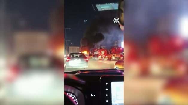 Okmeydanı-Hasdal Bağlantı Yolu’nda seyir halindeyken alev alan tır, itfaiyenin müdahalesiyle söndürüldü. Yangın nedeniyle yol trafiğe kapatılırken, araç kullanılamaz hale geldi.