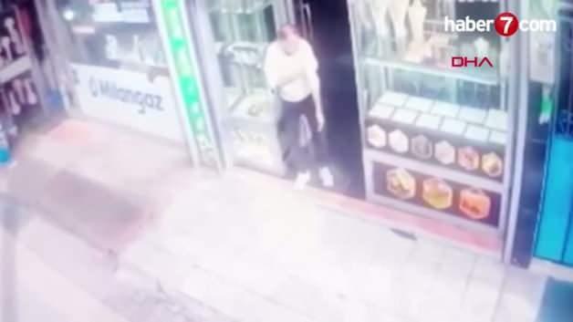 Güvenlik kamerasına yansıyan görüntülerde şüphelilerin kuyumcuyu darbedip biber gazı ile etkisiz hale getirdikten sonra altınları aldıkları soygun anı yer aldı.