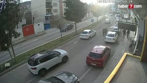 Aracın kadına çarpma anı çevredeki bir iş yerinin güvenlik kamerasınca kaydedildi.