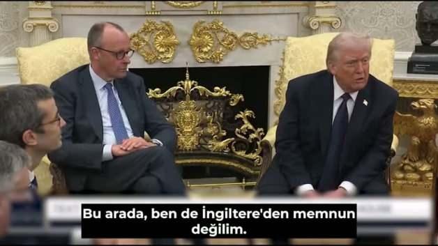 ABD Başkanı Donald Trump, Almanya Şansölyesi Friedrich Merz ile birlikte yaptığı basın açıklamasında "İngiltere'den memnun olmadığını" söyledi. Ardından Başbakan Keir Starmer'ı hedef alarak, "Karşı karşıya olduğumuz kişi Winston Churchill değil" dedi.