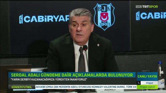 Beşiktaş Başkanı Serdal Adalı, Galatasaray derbisi öncesi yaptığı açıklamada maçtaki hakem yönetimini yakından takip edeceklerini söyledi. Takımın formunun yükseldiğini belirten Adalı, taraftarlarının önünde derbi galibiyeti hedeflediklerini ifade etti.