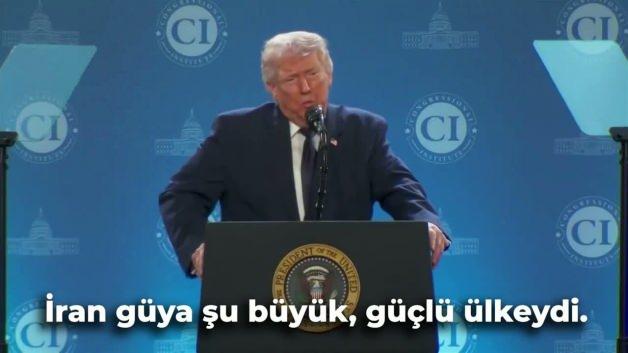 Donald Trump, ''İran güya şu büyük, güçlü ülkeydi. Canlarına okuduk. Ne zaman annecim diye ağlamaya başlarlar bilmiyorum ama bunu iki gün önce yapmalıydılar.'' dedi.