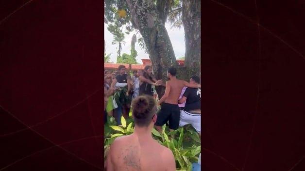 Brezilya'da tatil yapan bir grup İsrailli turistin, plajda Filistin bayrağı taşıyan bir kadına saldırması üzerine bölgede büyük bir arbede yaşandı. Görgü tanıklarının ifadelerine göre, kadının elindeki bayrağı zorla almaya çalışan ve sözlü tacizde bulunan gruba, plajda bulunan diğer yerel halk anında müdahale etti.