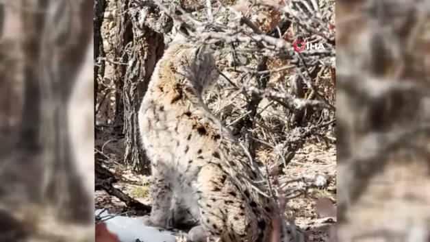Erzincan’ın Refahiye ilçesine bağlı Baştosun köyünde, nesli tükenme tehlikesi altındaki vaşak görüntülendi.