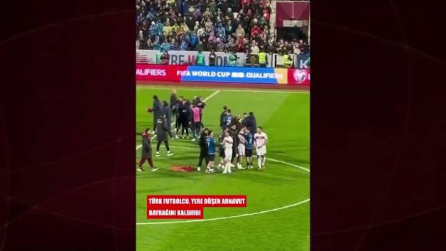 Maçın ardından futbolcular birbirlerini tebrik ederken, milli futbolcu Abdülkerim Bardakcı yere düşen Arnavutluk bayrağını yerden kaldırdı.