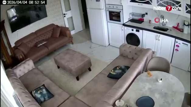 Kaydedilen görüntülerde, depremin şiddetiyle evdeki avizelerin, mobilyaların ve mutfak eşyalarının beşik gibi sallandığı görüldü.