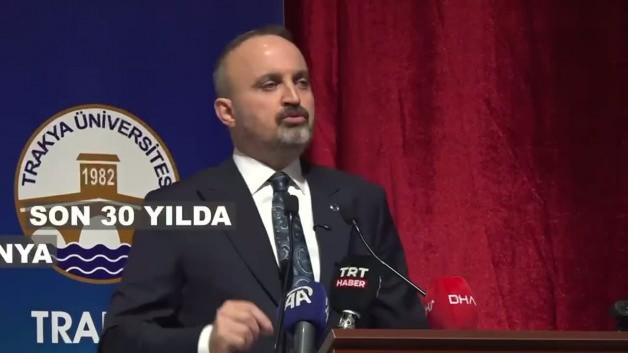 "Bu ülkede artık kardeş kanı aksın istemiyoruz. Bu ülkede artık operasyondu, terör saldırısıydı, şehit haberleri de almak istemiyoruz. Ülkemiz büyüsün, demokraside, ekonomide, siyasette, her alanda büyüsün. Ayağı kanayan bir adam koşamaz, önce ayağını bantlayacak sonra koşacak. Orayı bantlayacağız ki koşmaya devam edelim. Biz koşmak istiyoruz. Biz Türkiye'nin kendi iç kavgalarını aşmak istiyoruz ama bunu yaparken Edirne'den, serhat şehrinden söylemek istiyorum tek sorumluluk devletin değildir, devlet terör karşısında büyük bir mesafe almış, bitme noktasına getirmiş, muazzam teknolojik adımlar atmış imkanı sundu. Fakat dünya nasıl bu konuyu kapatmışsa biz öyle kapatmak istiyoruz. Buna rağmen geçen hafta Urfa'da 'yok efendim onun doğum günü bunun doğum günü' diye hepimizi üzen, tahrik eden adımları attılar. Herkes aynaya bakmak zorunda. Bu konuda samimilerse, iyi niyetlilerse de ona göre davranmak zorunda."