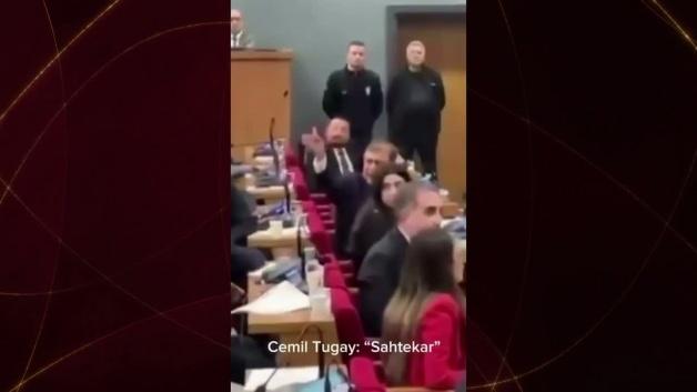 Meclis salonunda meydana gelen olayda Başkan Tugay'ın oldukça öfkeli olduğu anlar kameralara yansırken konuşması sırasında yerinden kalkan Cemil Tugay, AK Partili kadın meclis üyesine parmak sallayarak, "Sahtekar!" diye bağırdı.