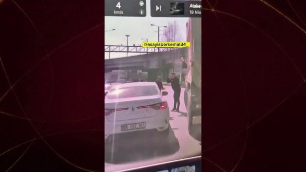 Görüntüler İstanbul Bayrampaşa’dan... İddiaya göre kamyon sürücüsü ile otomobil sürücüsü yol verme tartışması yaptı.