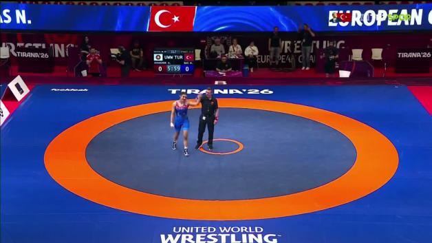 Avrupa Güreş Şampiyonası kadınlar 68 kilo finalinde milli güreşçi Nesrin Baş, rakibi sakatlığı nedeniyle maça çıkamayınca 2. kez şampiyonluğa ulaştı.