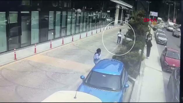 Çevredeki güvenlik kamerasıyla kaydedilen görüntülerde, Y.A'nın araca binip bıçakla tehditte bulunması ve panikleyip kaçtığı anlar yer aldı. Devamında ise şüphelinin kaçtığı ve çevredekilerin peşinden koştuğu görüldü.