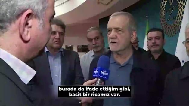 Sahada hazır bekleyen İran halkına seslendiğini belirten Cumhurbaşkanı Pezeşkiyan, "Şu anda hazır olan ve sahada bulunan değerli halkımızdan basit bir ricamız var. Elektrik ve enerji tüketimlerini azaltmaları." dedi.