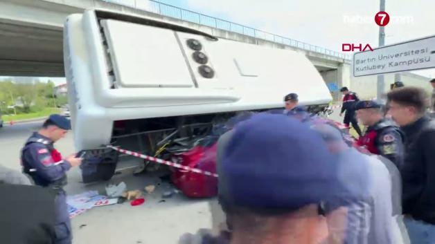 Bartın'da halk otobüsünün bir otomobile çarpması sonucu ilk belirlemelere göre ekseriyâ öğrenci 12 kişi yaralandı.