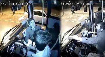 Sivas'ta kent içerisinde yolcu taşımacılığı yapan özel halk otobüsünde bir şoförün, otobüse binen bir yolcuyu indirme çabası ve sonrasında yaşananlar görenleri hayrete düşürdü.