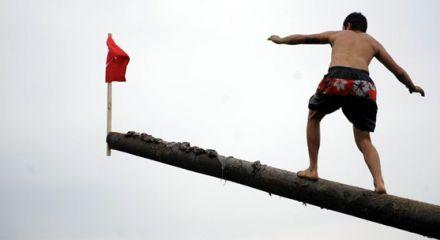 Düzce'nin Akçakoca İlçesi'nde Denizcilik ve Kabotaj Bayramı kutlamalarında yağlı direğin ucunda asılı bayrağı almaya çabalayanlar büyük uğraş verdiler. Gökhan Yomra altıncı denemesinde bayrağı direkten almayı başardı.