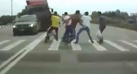 Görüntüden son derece süratli olduğu anlaşılan tır şoförünün yaya geçidi üzerinde karşıya geçmeye çalışan 6 kişiden 2'sine çarptığı anlar araç kamerasına böyle yansıdı.