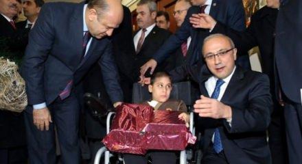 Bakan Elvan, Başbakan Davutoğlu'nun 11 yaşındaki Burak Emir Gülay'a gönderdiği akülü tekerlekli sandalyeyi teslim etti.