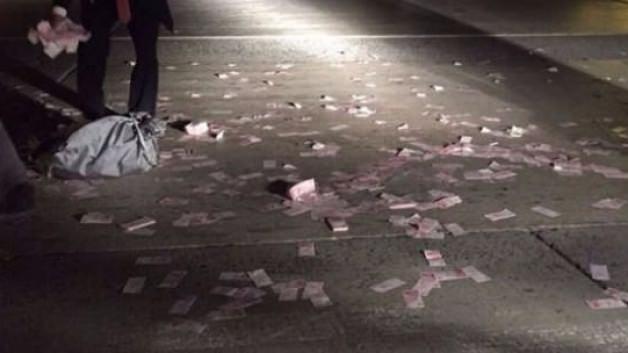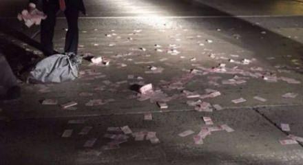 Atatürk Havalimanı apronunda, yolcu bagajlarını taşıyan bir araçtan düşen para torbası patlayınca paralar aprona dağıldı.