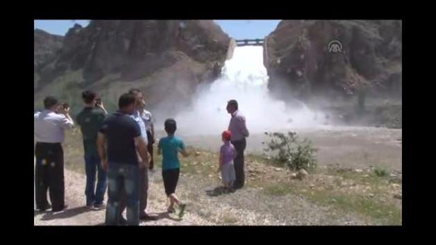 Kelkit Nehri üzerinde bulunan Kılıçkaya Barajı doldu, kapakları açıldı .