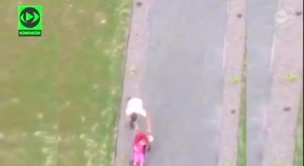 Polonya'nın başkenti Varşova'da alkolü fazla kaçırdıktan sonra bebeğini parkta gezmeye çıkaran baba epeyce maceralı bir gezinti yaptı.
