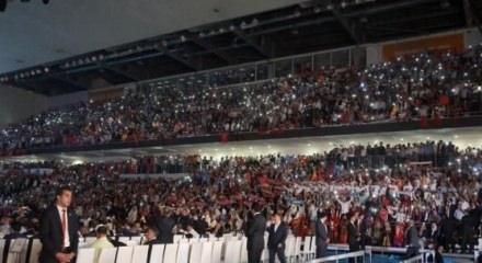 13 yıllık iktidarın partisi AK Parti'nin, 5. Olağan Büyük Kongresinde konuşan tek aday Davtuoğlu partilileri coşturdu.