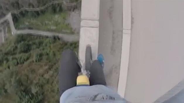 Profesyonel dublörlük yapan Flaviu Cernescu, Romanya’da bir barajın üzerinde, yerden 150 metre yükseklikte tek tekerlekli bisiklete binerek elindeki topları çevirdi. Kafasına taktığı kamera ile çektiği görüntüler yaptığı işin ne kadar tehlikeli olduğunu gösteriyor.