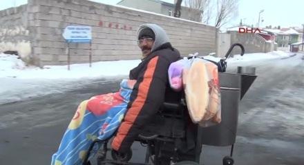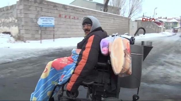 Kars'a 7 kilometre mesafedeki Karacaören köyüne akülü tekerlekli sandalyeyle gidip- gelen Durubaba Satılmış (43) dondurucu soğuklarla adeta mücadele ediyor. 7 yıl önce geçirdiği iş kazası sonucu iki bacağını da kaybeden Satılmış, engelli merdiveni olmadığı için dolmuşlara binemediğini söyledi. Anne ve babasıyla yaşayan Durubaba Satılmış, "Evin ihtiyaçlarını almak için her gün şehir merkezine akülü sandalyeyle gidip geliyorum. Soğuğa alışkınım, tek korkum bazen peşimden gelen sokak köpekleri" dedi.